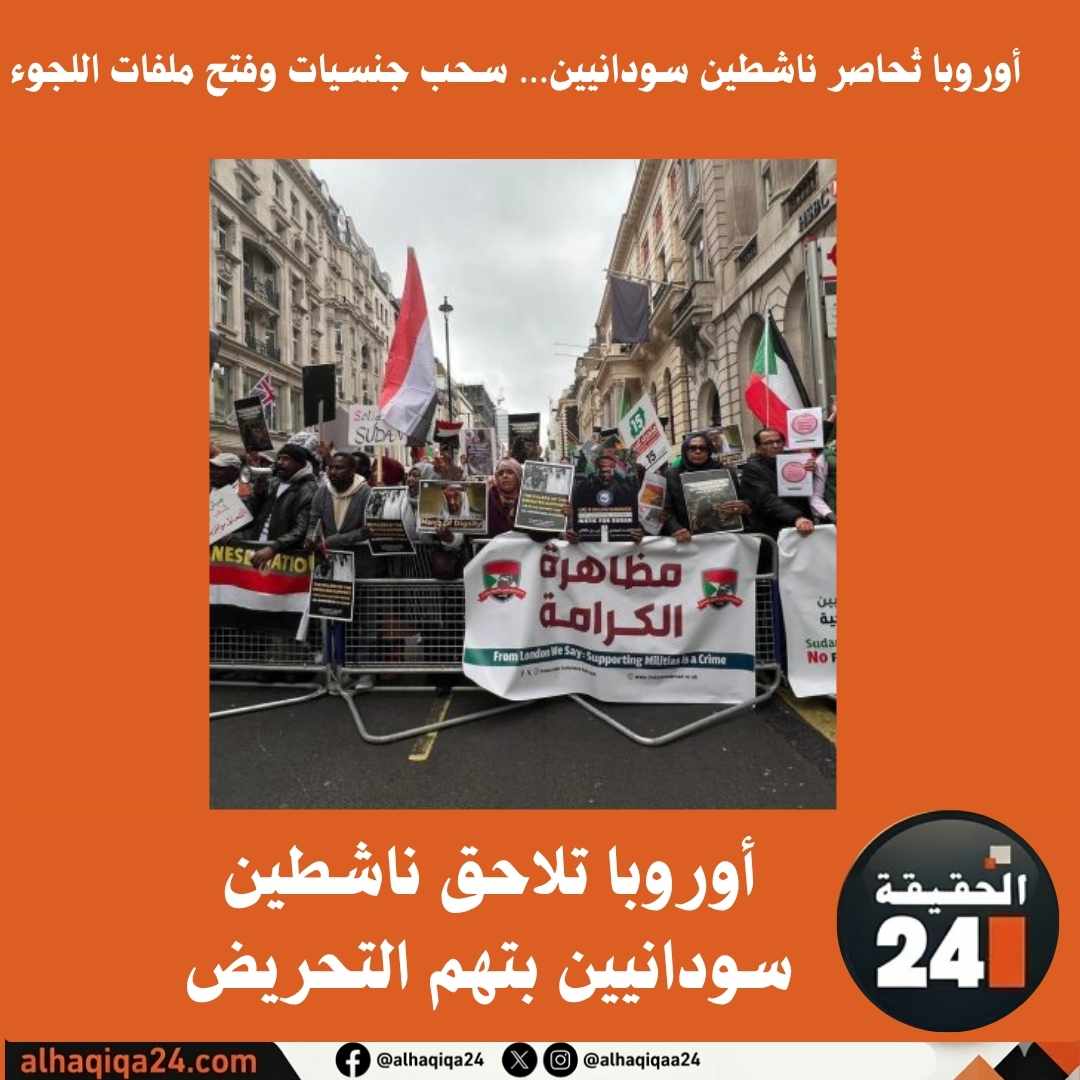 أوروبا تلاحق ناشطين سودانيين بتهم التحريض وتدقيق ملفات اللجوء عواصم أوربية – الحقيقة 24 بدأت سلطات الهجرة في عدد من الدول الأوروبية، بينها النرويج وهولندا، اتخاذ إجراءات قانونية لمراجعة ملفات…